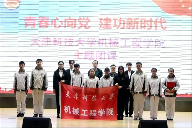 为纪念五四运动一百周年,弘扬爱国奋斗精神,引导青少年树立远大理想,激发出更大的学习动力和热情,4月29日中午,机械工程学院团委李通老师带领我院优秀学生代表焉蕾、万紫研、黄根、蒋箫平深入北京师范大学天津附属中学共同参加"青春心向党,建功新时代"主题团日活动暨天津科技大学机械工程学院主题团课宣讲,本次活动也是北京师范大学天津附属中学新团员的离队入团仪式。