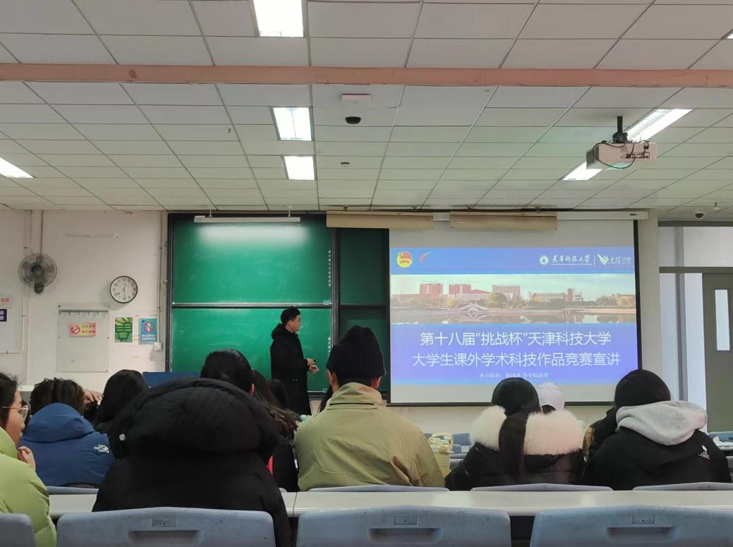 为了让同学们更深入了解挑战杯比赛,激励同学们踊跃参加2025年“挑战杯”大学生课外学术科技作品竞赛,学院邀请校科协于12月20日在滨海中校区图书馆9-1阶梯教室为我院学生开展“挑战杯”大学生课外学术技术作品竞赛宣讲会。