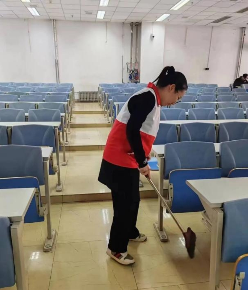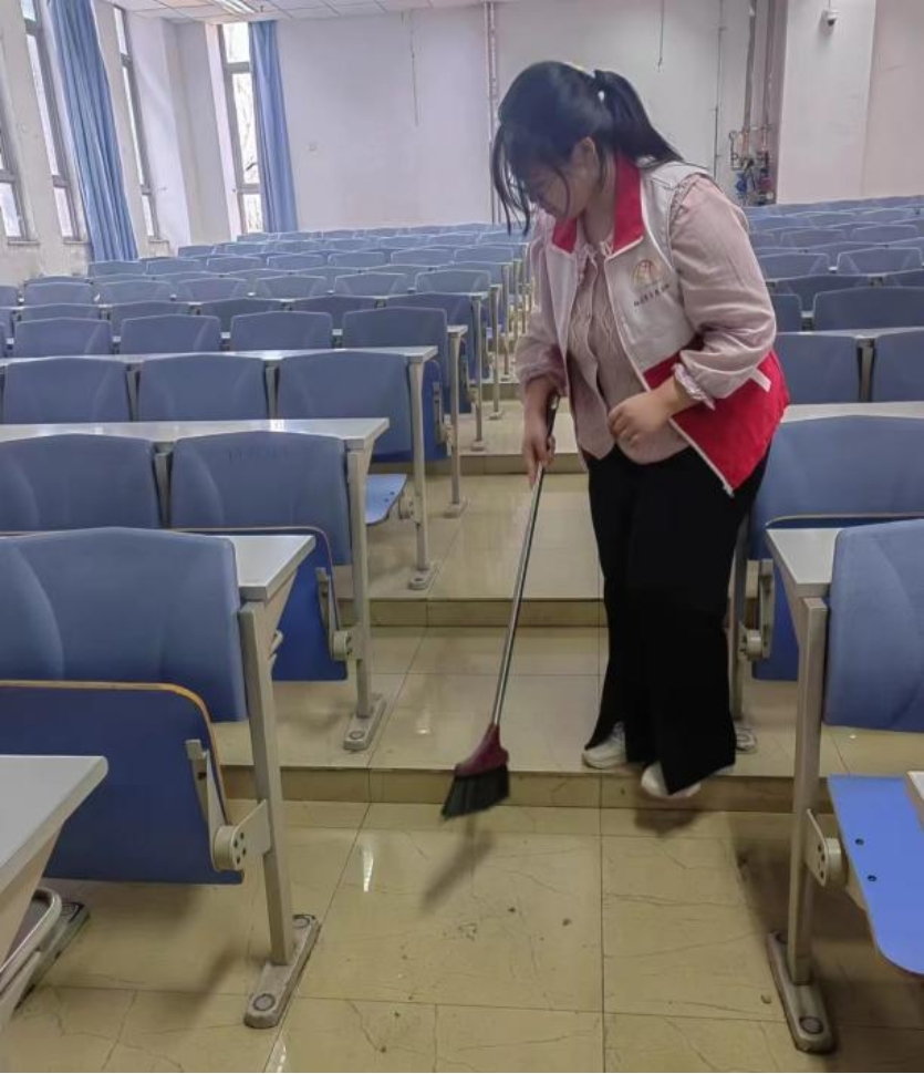 向日葵志愿者协会组织志愿者每天晚上对校内义务劳动责任区进行全面彻底检查、及时将结果反馈至辅导员处,并协助各团支部进行卫生清扫、清理垃圾,坚持“发现一处、清理一处”,细致排查卫生死角和盲点。
