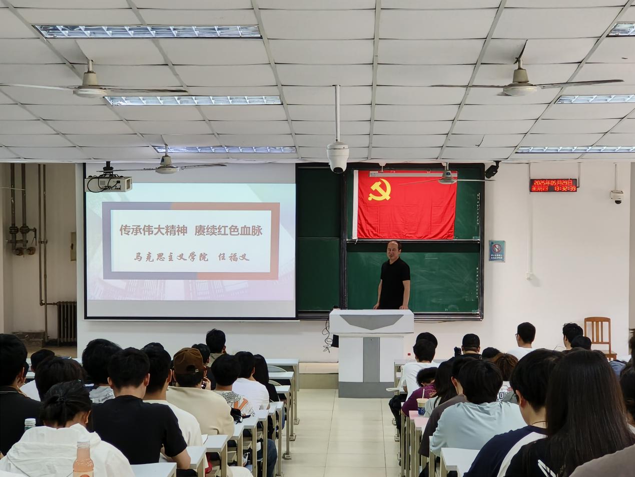 在讲述过程中,任老师详细讲解了中国共产党人精神谱系所展现的坚定理想信念、真挚为民情怀、高度自觉的纪律意识等丰富内涵。他引用了大批经典历史事例,生动展现了共产党人如何在不同历史时期践行伟大精神,为实现国家富强、民族振兴与人民幸福不懈奋斗。他指出,红船精神体现了开天辟地、敢为人先的首创精神,坚定理想、百折不挠的奋斗精神;井冈山精神彰显了坚定信念、艰苦奋斗、实事求是、敢闯新路、依靠群众、勇于胜利的内涵;长征精神凸显了坚韧不拔、自强不息、勇往直前的品质;延安精神蕴含着坚定正确的政治方向、解放思想、实事求是的思想路线、全心全意为人民服务的根本宗旨、自力更生、艰苦奋斗的创业精神。这些事例,使在场师生深刻领悟到红色血脉中蕴含的强大力量。