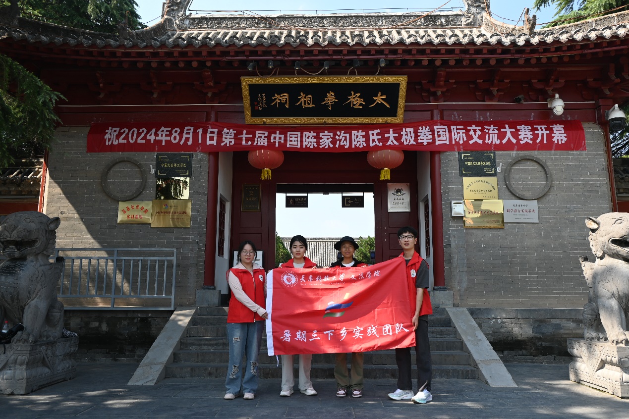 为深入学习贯彻党的二十大精神,积极响应国家关于文化保护与传承和语言文化的重要指示,天津科技大学文法学院豫语拳韵实践团于8月1日赴河南温县陈家沟,开展暑期“三下乡”社会实践活动。队伍此行围绕下乡推普主题,通过实地调研、访谈交流,旨在了解太极拳的历史根源和发展现状,加强推普宣传,以语言为媒介搭建文化桥梁,推动太极拳文化的传承与创新,为乡村振兴与文化自信贡献力量。