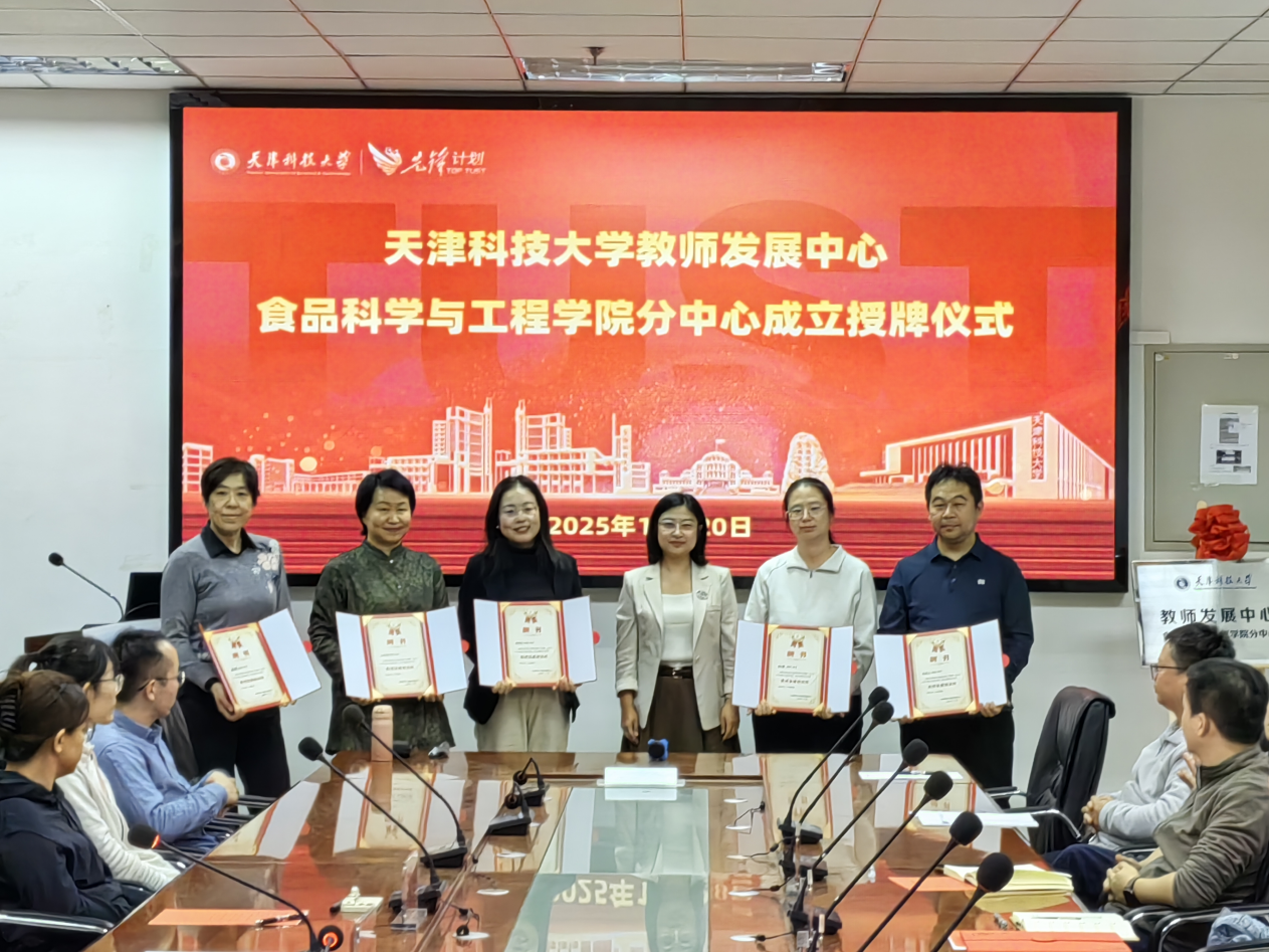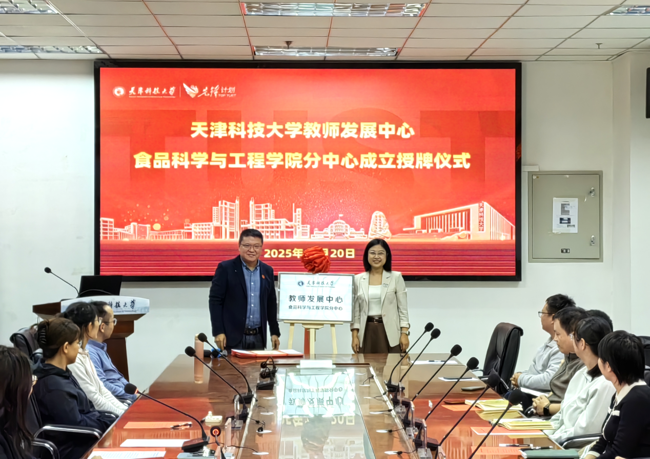 为深入落实立德树人根本任务,进一步完善学校“1-5-5-5”教师发展促进体系,推动教师发展服务精准下沉至院系层面,11月20日下午,天津科技大学教师发展中心食品科学与工程学院分中心授牌仪式在逸夫楼337会议室顺利举行。食品科学与工程学院党委书记杜欣军、副院长李书红、教师发展中心副主任杨晨及学院教师代表出席仪式,仪式由副院长李书红主持。