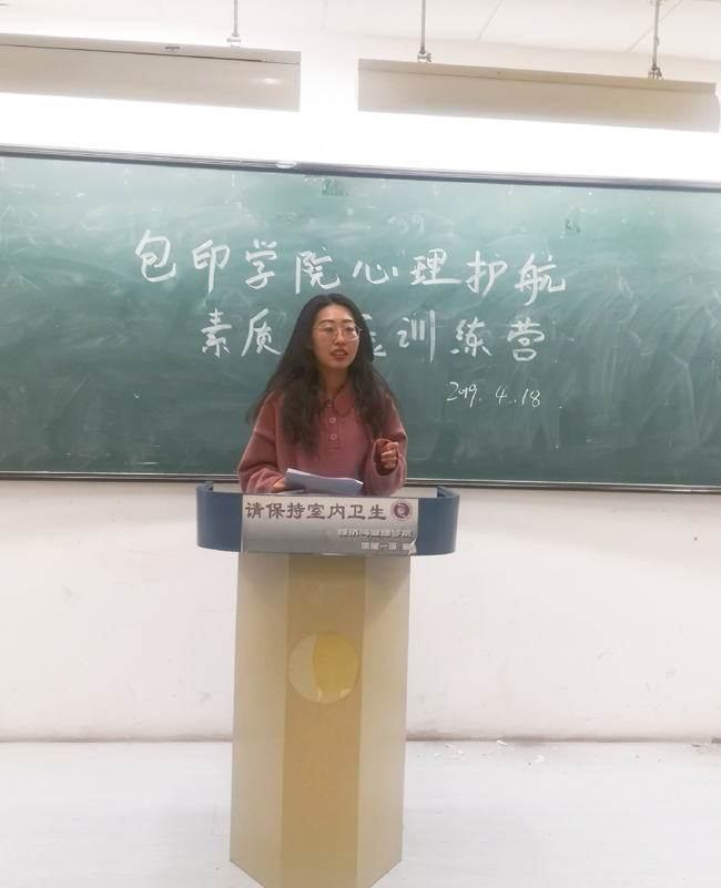 为提高大学生思想素质,促进班级团体共同进步,提升学生理性平和、积极向上的健康心态,2019年4月19日,包印学院2018级在泰达图书馆第二绘图室举办了心理护航系列活动之素质拓展训练营心理工作坊的活动,活动由2018级辅导员张祯老师、安园园老师主持,各班心理委员及学生代表参加此次活动。