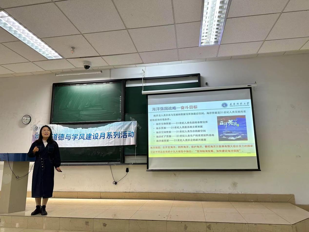 为传承海洋精神,进一步加深学生对“海洋强国”战略的理解,提高学院研究生的学术研究水平和专业素养,营造优良学术氛围,加强学术交流,11月16日中午,海洋与环境学院研海论道第十三期暨科学道德和学风建设教育宣讲会在滨海中校区图书馆9-6阶顺利召开。本次宣讲会邀请海洋与环境学院青年教师许丽娜老师担任主讲嘉宾,全体2022、2023级研究生参加。