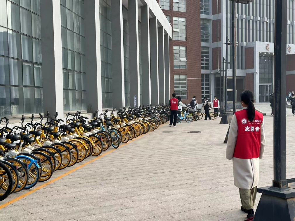 “规范校园非机动车停放”志愿活动。学院积极响应学校号召,依照学校划分的区域与维护时间段,于近日组织同学们进行了助力校园非机动车规范摆放的志愿服务活动。志愿者们分批到达图书馆附近的共享单车停放点,他们分工明确、各司其职,迅速投入到单车规范摆放的工作中。志愿者们将单车集中到规定的停放区域,引导学生们遵守停放规则。在他们的辛勤付出和积极引导下,共享单车停放杂乱的问题有了明显的改善,还提升了校园环境的整洁度和美观度。