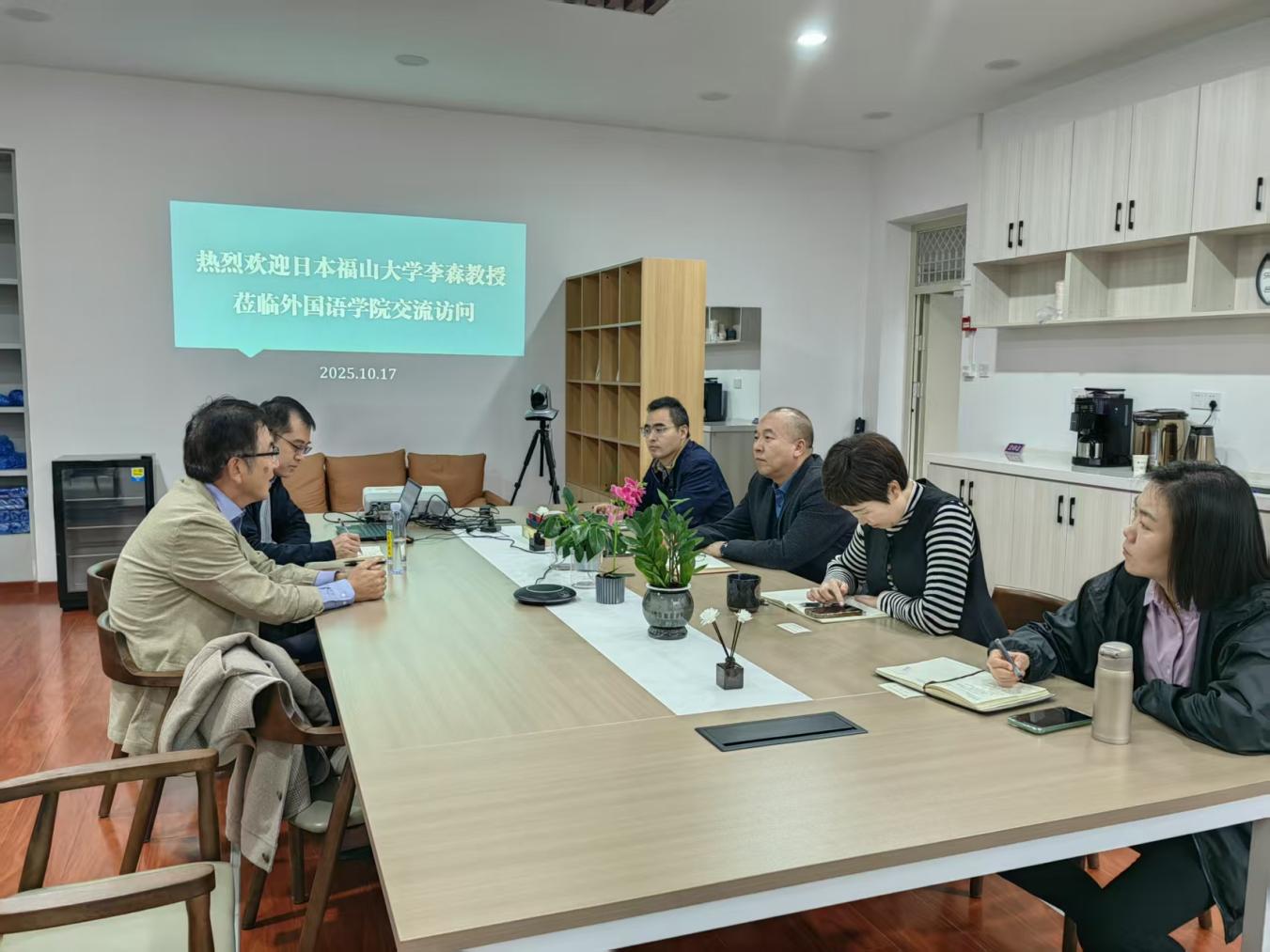 10月17日,日本福山大学国际交流中心副主任李森教授到访我校外国语学院,与师生就交换留学项目展开深入交流。外国语学院院长潮洛蒙,副院长王莹、赵国柱、王祎,日语系教师林伯成热情会见了李森教授。