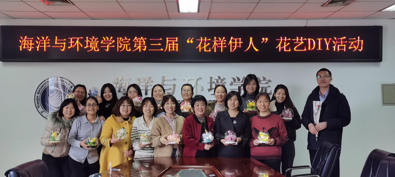 为庆祝第114个“三八”国际劳动妇女节,全面贯彻落实党的二十大和二十届二中全会精神,做好新时代工会女职工工作,团结动员学院广大女教职工继续争做加快推进学院事业高质量内涵发展的先锋,3月8日,海洋与环境学院工会在滨海中校区9-512会议室开展第三届“花样伊人”花艺DIY主题活动。