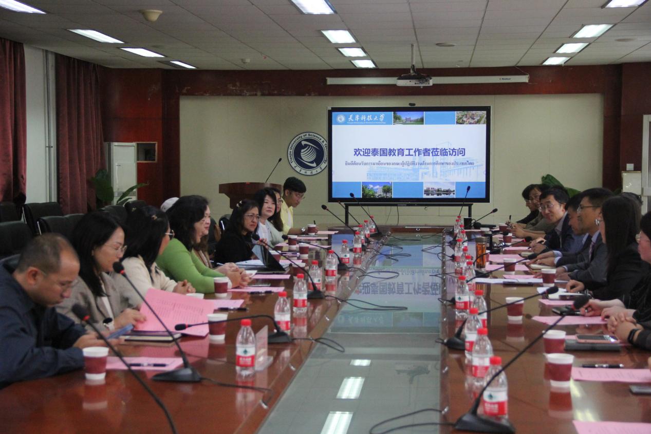 2023年10月11日,泰国易三仓大学副校长阿姆诺伊,本乍马学校副校长阿姆派、阿提塔恩,是拉差易三仓学校中文部主任邓可盈,罗勇易三仓学校科学部、语言部主任索拉维斯、李悟洲等相关负责人一行来我校进行交流访问。天津科技大学国际交流处、生物工程学院、食品科学与工程学院及我校驻易三仓大学孔子学院相关负责同志、教师代表到场参加。会议由国际交流处副处长赵佩钦主持。