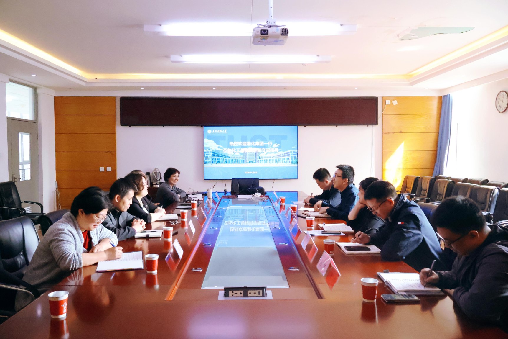为加强化工领域的人才培养与技术创新,深化校企合作,4月9日,天津渤海化工集团人力资源部部长刘洋、科技创新部部长殷伊琳等一行5人到化工与材料学院进行交流。学院领导班子及教师代表参加座谈。