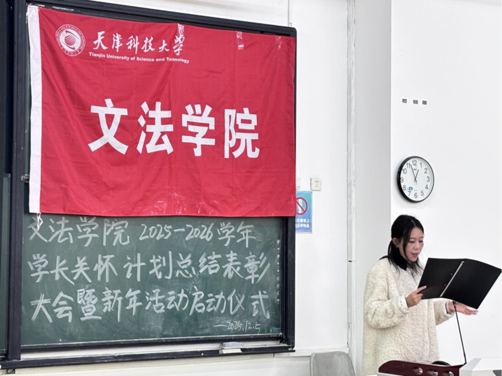 为推动“先锋计划”实施,发挥优秀学长模范作用,近日,文法学院在河西校区主楼A103室举行2025-2026学年学长关怀计划总结表彰大会暨新学年活动启动仪式。本次会议由张凯翔主持,参会嘉宾有学院团委书记、学生办公室主任、2024级辅导员穆庆夏,2023级辅导员刘宇,2025级辅导员刘科拉以及全体关怀计划学长学姐和新生代表。