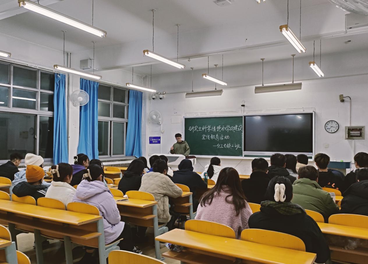 2023级化工专硕3班于11月16日召开主题班会集中学习《关于进一步弘扬科学家精神加强作风和学风建设的意见》。首先,班级宣传委员赵一兰同学对文件中的内容进行逐一分析和阐述,着重讲解了文件中对广大科技工作者做出的要求与建议。随后,班长俞子豪作出总结,并呼吁大家积极响应号召,从自身做起,从当下做起。班级同学做出热情的回应,并表示今后会严于律己,不断规范自身行为。