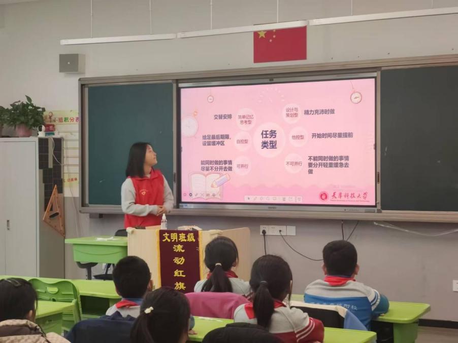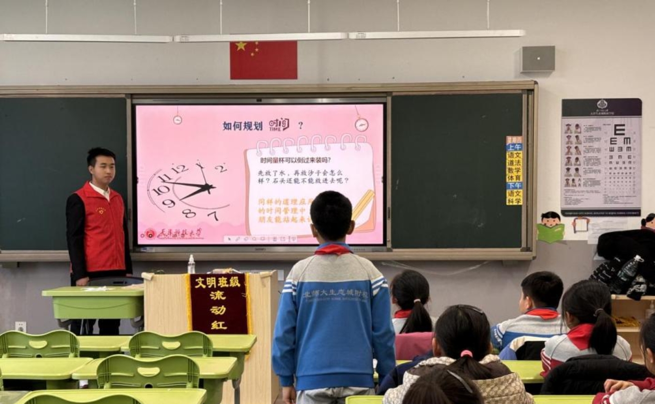 为帮助中小学生掌握有效的时间管理技巧,提升学习效率,12月12日下午,外国语学院先锋实践队前往生态城北师大附校开展了时间管理主题实践活动。
