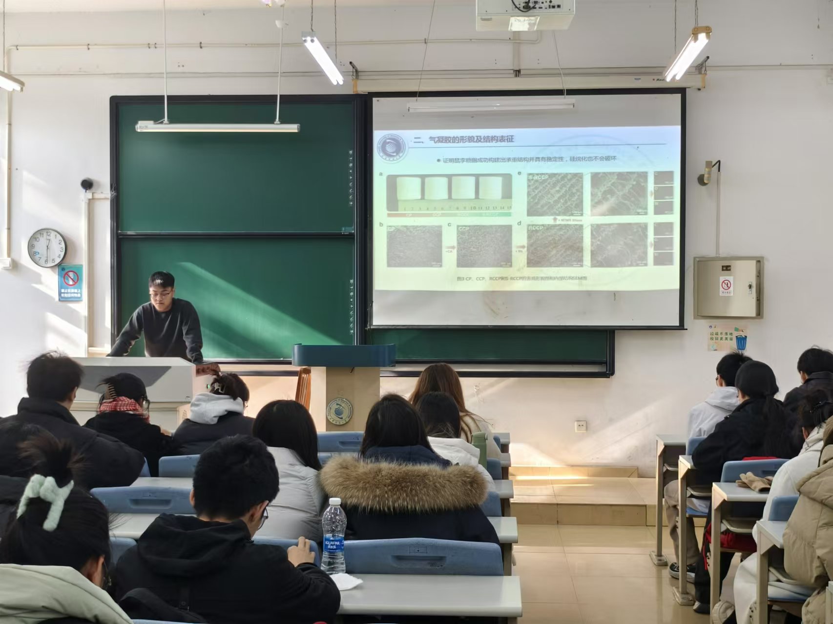 为深入推进落实学校“先锋计划”,推动“研教卓越”行动计划见行见效,激发研究生的创新意识,引导研究生大力弘扬科学家精神,积极开展学术交流、拓展学术视野、提高创新实践能力,矢志报国做科研先锋,近日,轻工学院于滨海校区中院3号楼101教室举办了第152期“博学笃志”硕博论坛活动。本期论坛邀请2022级材料与化工专业硕士研究生别文萱和宋万龙作为主讲人,2024级硕士研究生张亚敏主持,各年级研究生近70人参加活动。