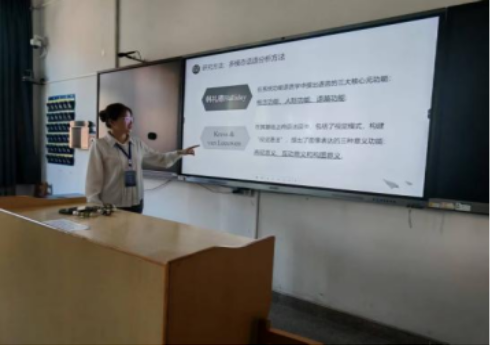 研讨会中,张琪琪同学报告了论文《中国传统手工艺跨文化传播视频的多模态模式与启示》,该论文在顾毅教授、何国锦老师的指导下完成。论文以新媒体网络的快速发展为背景,以阿木爷爷YouTube视频为例,在Kress & Van Leeuven的视觉语法理论基础上,从再现意义、互动意义和构图意义角度对其视频进行多模态话语分析研究,分析视频中图像、形象、色彩、声音等符号如何展现中国传统手工艺和田园风光、构建中国传统木工匠人形象。