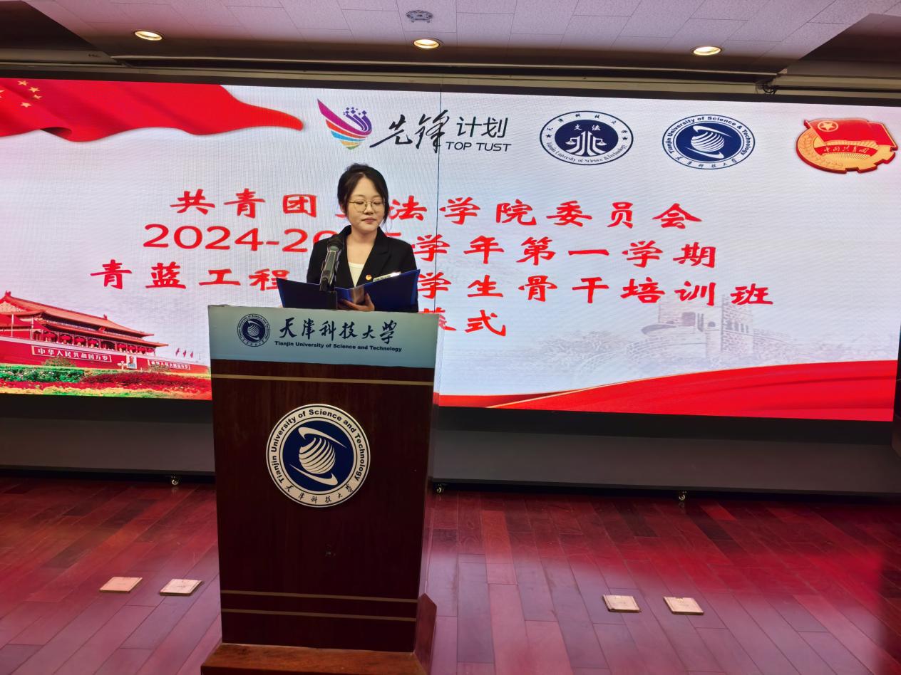 开幕伊始,共青团文法学院委员会副书记王姝瑾强调,作为学生骨干,需加强政治认同,提升自身素质,领悟红色精神,树立服务同学的意识。她详细介绍了优秀学生骨干的评优标准,鼓励新学员勇于挑战自我、肩负责任,在大学生骨干培训中不断成长。