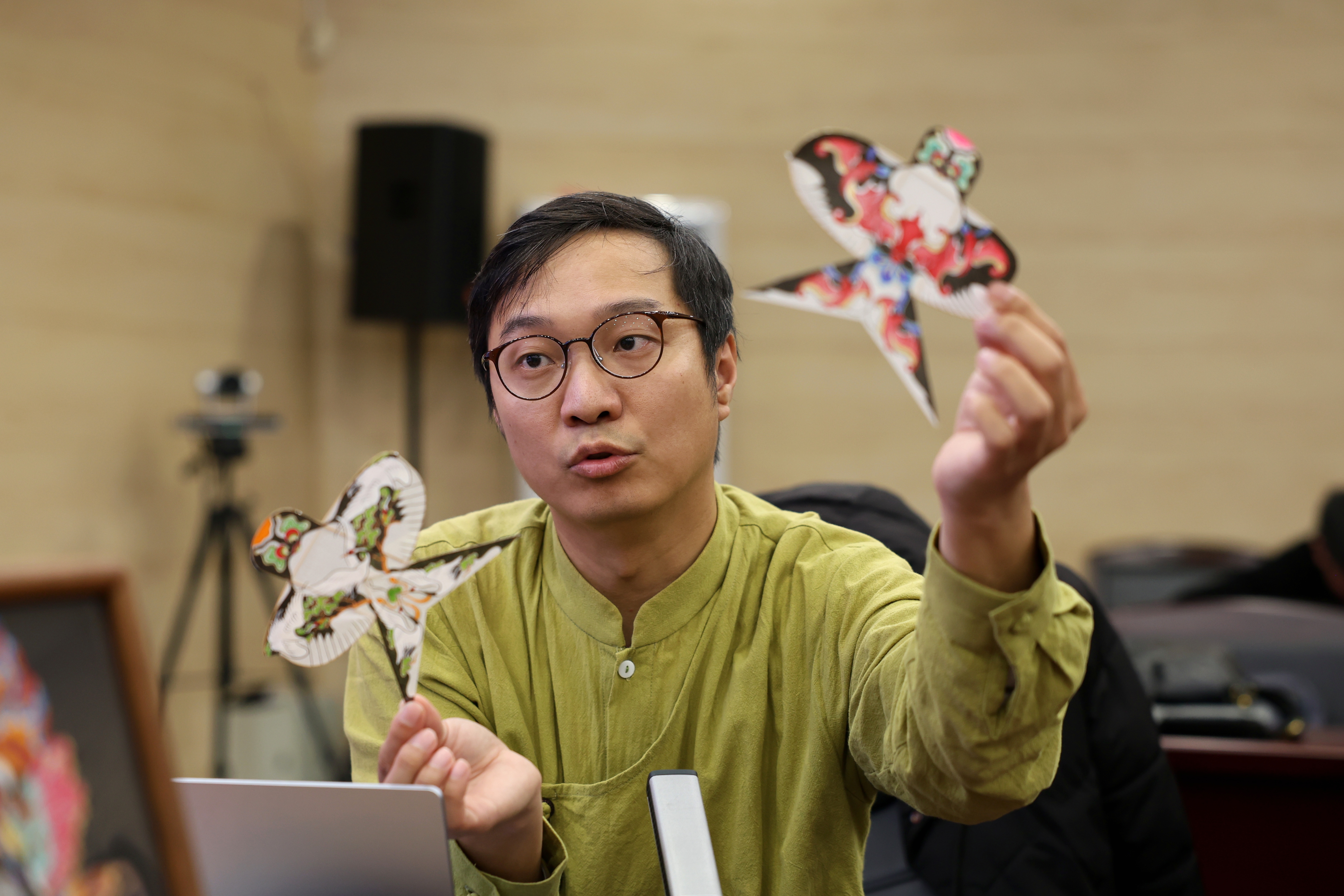 讲座伊始,津派风筝传承人李维之老师以“津派风筝飞进现代生活”为主题,首先带大家领略了世界各地风筝的迥异风采。随后,李老师将目光聚焦于中国风筝的历史文化,详细阐述了不同时期风筝的寓意变迁。在介绍中国各地风筝特色时,李老师重点讲解了潍坊、北京、南通和天津四大风筝流派。潍坊风筝色彩鲜艳、造型多样,被誉为“世界风筝之都”;北京风筝以“沙燕”为代表,线条流畅、寓意吉祥;南通风筝则以“板鹞”为特色,装有哨口,放飞时百哨齐鸣;而天津风筝,作为津派非遗的重要组成部分,更是以其“骨架精巧、画工细腻、飞行平稳、可拆可叠”的艺术特色独树一帜。