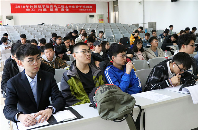 为培养优秀、负责的大学生骨干,计算机学院团委于2019年4月25日中午12:30在泰达校区西院8-5阶梯教室举行计算机学院青马工程之学生骨干培训班第三讲。天津市青马工程第一期优秀学员李圣杰出席本次培训并担任主讲人,2018级全体骨干参加。