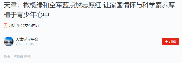 学习强国宣传报道丨天津:橄榄绿和空军蓝点燃志愿红 让家国情怀与科学素养厚植于青少年心中