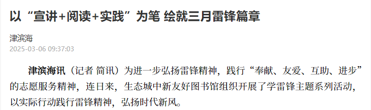 津滨海宣传报道丨以“宣讲+阅读+实践”为笔 绘就三月雷锋篇章