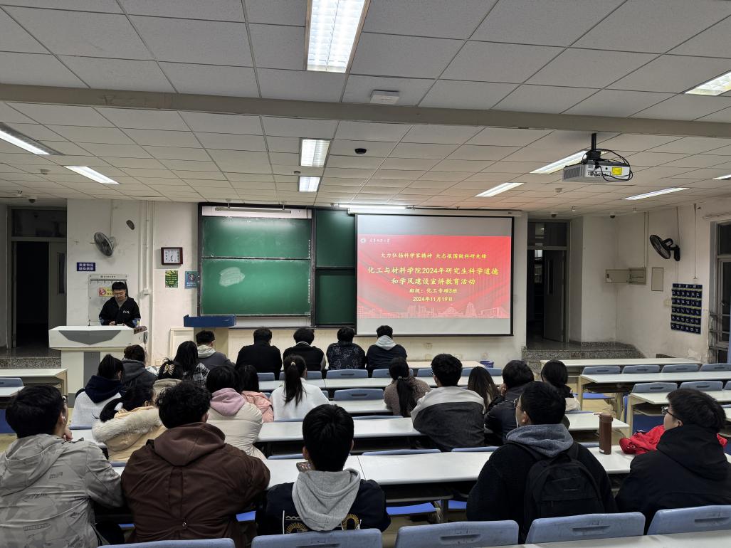 为全面学习宣传贯彻党的二十大精神,切实加强科研作风和学风建设,化工与材料学院开展科学道德与学风建设第一期活动,2024级研究生各班级于11月18日至11月23日开展了“研究生科学道德与学风建设”主题班会。各班活动详情如下: