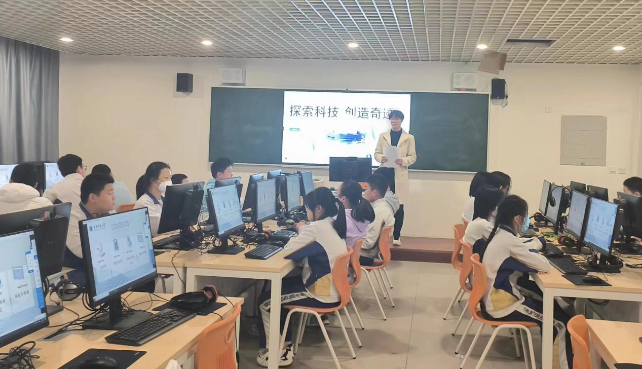 为深入贯彻落实新时代党的教育方针,推动习近平新时代中国特色社会主义思想进教材、进课堂、进学生头脑,推进人才培养工作,完成立德树人根本任务,推进大中小学思政课一体化建设,发挥大学生的榜样力量,激发小学生对科技创新的兴趣。人工智能学院团委书记邓雪晨带领人工智能学院学生于2023年11月17日前往天津泰达实验学校为5-8年级学生开展授课活动。