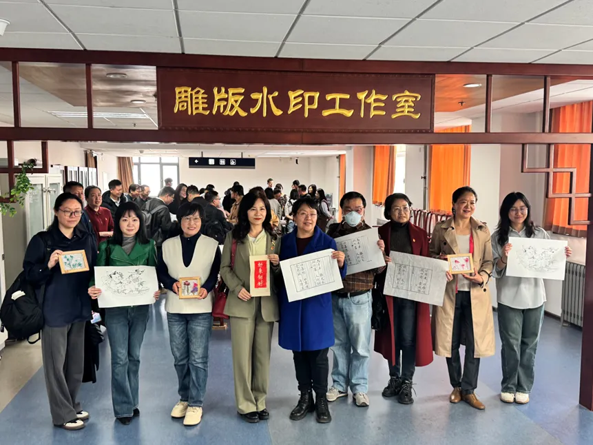 随后,在天师大古籍保护研究院工作人员的引导下,支部党员参观了雕刻水印工作室,饶有兴致地体验了金石传拓与木版水印的工艺与独特魅力。在古籍修复室,支部党员深入了解了古籍修复的设备与流程。古籍特藏书库内,工作人员正在研究、修复一批中医古籍,其中不乏珍本,支部党员与他们进行了深入交流,观摩了他们的日常工作,见到了大批珍贵藏本。古籍电子化工作现场更是为大家精彩呈现了传统文献与现代技术交相辉映的完美结合。该院的古籍扫描仪、大幅面宣纸打印机、纸张检测仪、古籍数字化工作台、洗书机等设备,令支部一行大开眼界,也给了教师党员推动学科交叉融合、开展新文科建设提供了宝贵的借鉴。