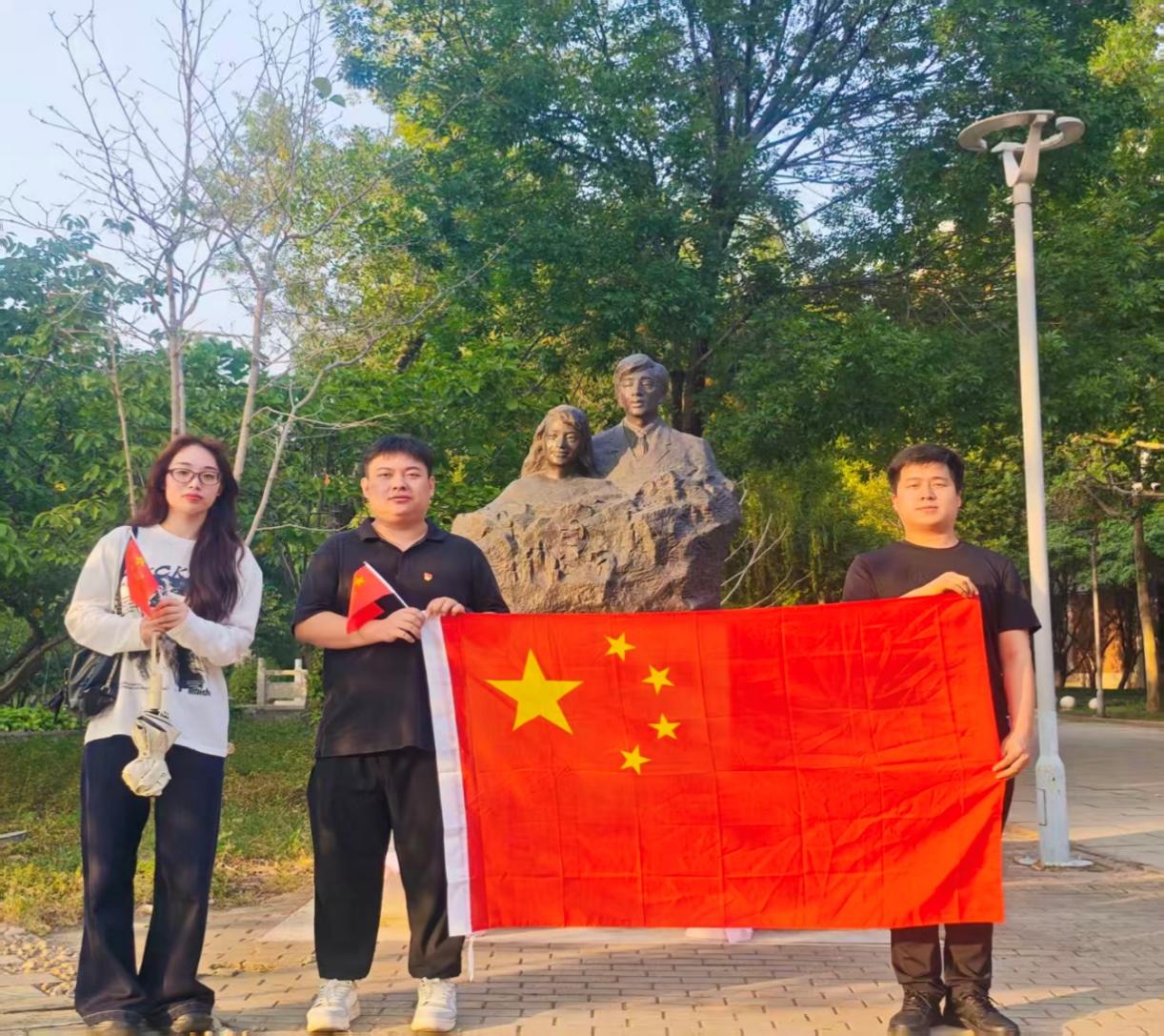合唱结束后,党员们手持鲜艳的五星红旗,有序前往学院与学校的“红色点位”拍照打卡——从学院党风廉政文化墙前,观初心使命镌刻,到“为党育人、为国育才”标语下,感受育人担当;从“爱国爱校爱人,尚德尚学尚行”校训石旁,悟精神传承绵延,到朱颖、许杏虎烈士像前,缅英雄风骨浩然;从“盐业黄埔”纪念石边,忆往昔征途璀璨,到尚德湖畔、体育馆门口,赏风景与精神同燃。每一处点位都定格下党员与国旗同框的身影,每一幅画面都饱含着对祖国的赤诚礼赞。大家或庄重肃立、或携手微笑,用镜头定格对祖国的深切祝福,用身影诠释党员的理想信念。
