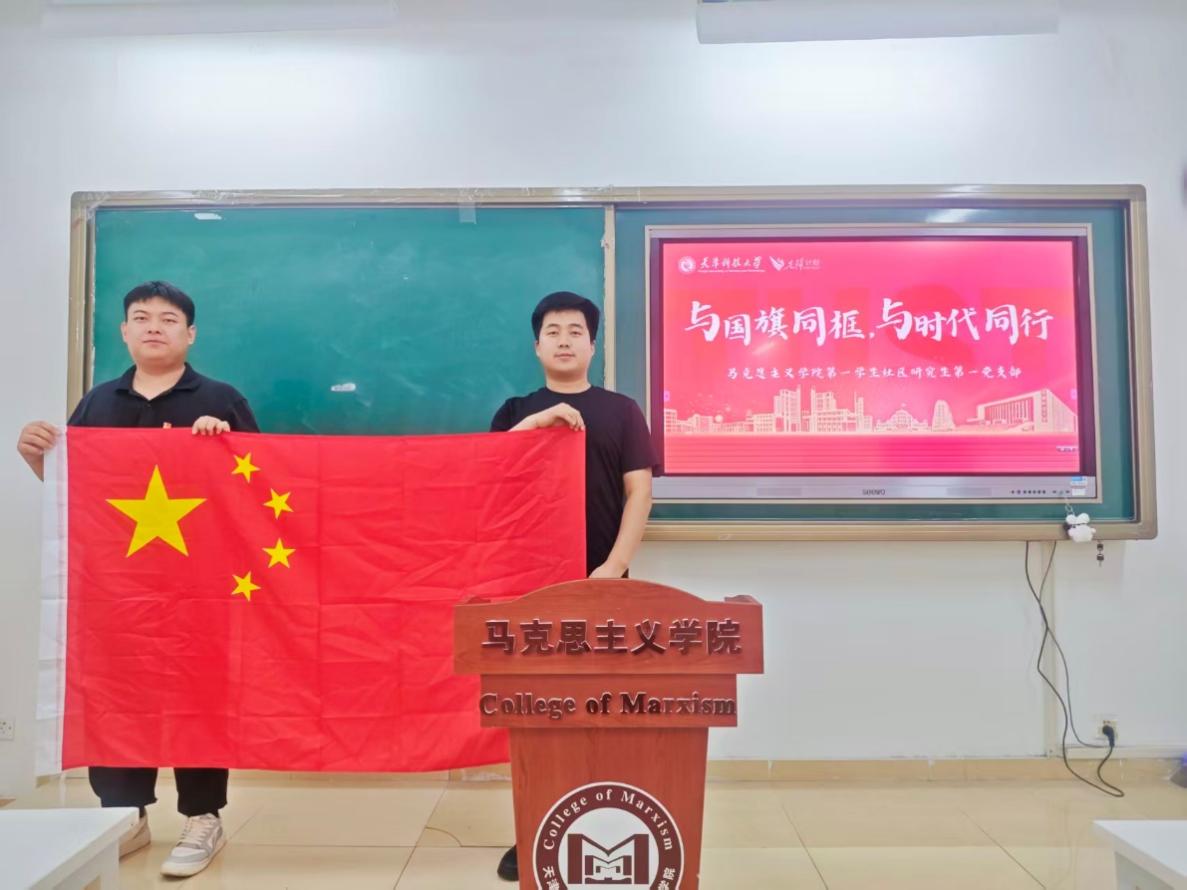 喜迎国庆,礼赞祖国。近日,马克思主义学院第一学生社区研究生第一党支部开展“与国旗同框,与时代同行”主题活动,展现了马克思主义学院学生党员昂扬向上的精神风貌,表达了对祖国的美好祝愿,厚植了浓浓的家国情怀。