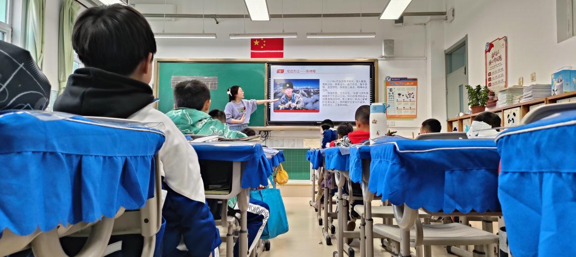 本次活动,生物工程学院课后服务志愿者2021级本科生王子桢以生动的语言和视频讲述了“清澈的爱,只为中国”戍边英雄陈祥榕的故事,“巍峨的喀喇昆仑山脉,绵亘于我国新疆南部。群山中的加勒万河谷被称作“生命禁区”,可在驻守的边防官兵心中,始终拥有坚定的信念:我站立的地方是中国,我要用热血和生命去捍卫脚下的每一寸土地。对英雄故事的讲述,既是知识课,也是人生课,是对英雄的礼敬,是爱国主义教育的映照,更是一次次心灵的播种,在课堂中学习他们的付出,从英雄的事迹中汲取营养与力量,让青少年真切感受到和平来之不易,明白何为牺牲、奉献,明白为何要努力学习、奋发向上,将爱国情转化为强国志、报国行。