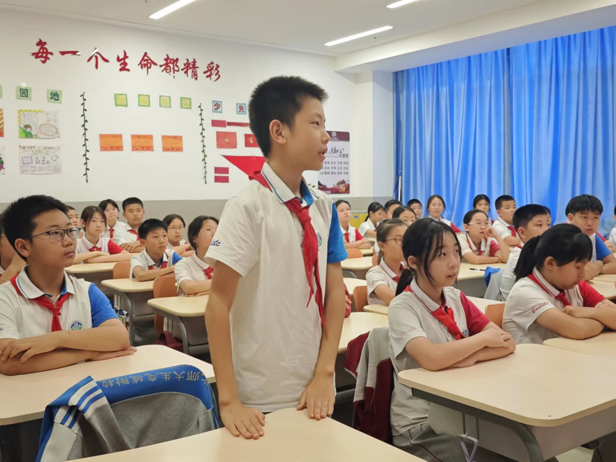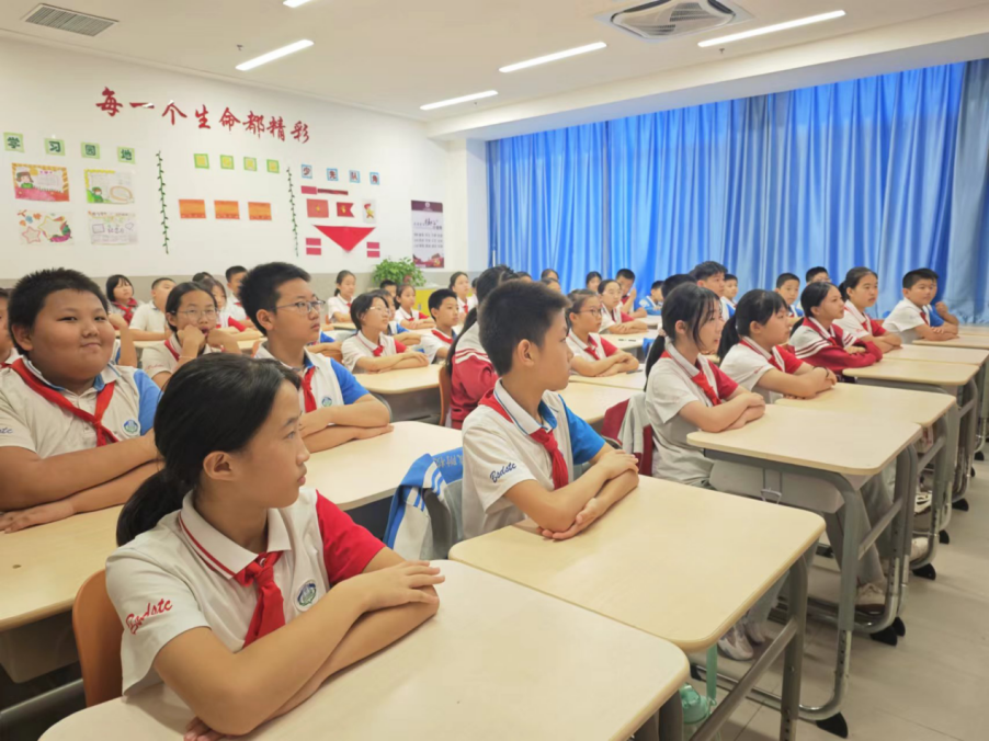 最后,队员们带领小学生们齐唱了《我和我的祖国》。在嘹亮的歌声里,爱国之情在每一个孩子心中澎湃涌动。那激昂的旋律如同跳动的火焰,点燃了孩子们对祖国的热爱与自豪。