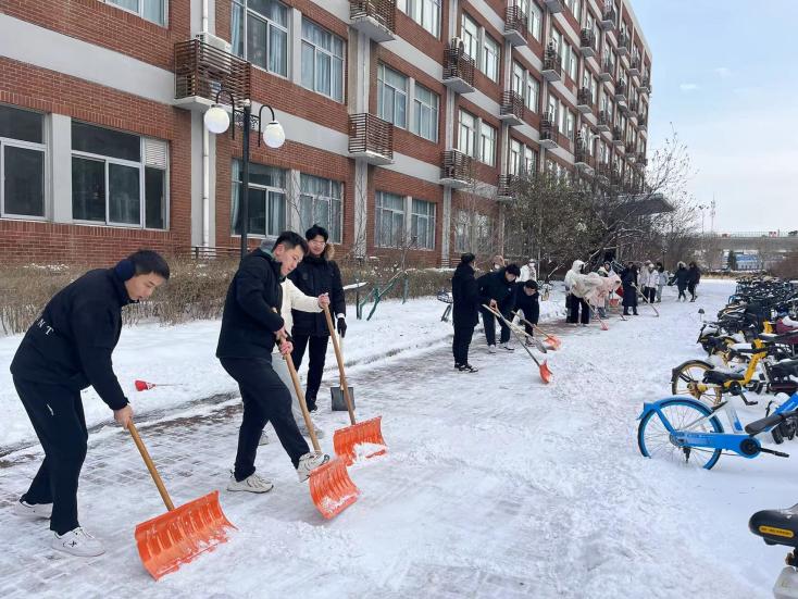 学院党员教师率先垂范,模范带头,有计划、讲配合、团结协作。带领团员青年有条不紊地清理积雪、铺设防滑地毯,干劲十足,高效配合,为师生开辟了一条洋溢着暖暖温情的方便之路,消除了教学楼周边的安全隐患。他们忙碌的身影也成为校园中一道靓丽的风景线,充分体现了生物学子团结协作与无私奉献的精神。来自本科、硕士团员青年纷纷表示,作为共青团员,要以实际行动践行党的优良传统,为师生安全出行贡献自己的一份力量,将学习教育成效转化为服务师生的实际行动。