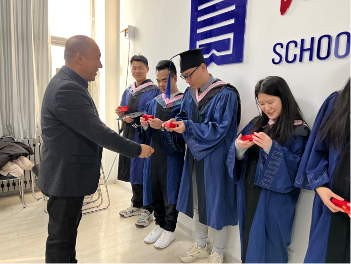 导师代表赵俊槐副教授寄语毕业生们:希望同学们牢记这两年半以来所取得的成功以及失败的教训。及时总结经验,弥补不足。在以后的工作中扬长避短,力争上游。