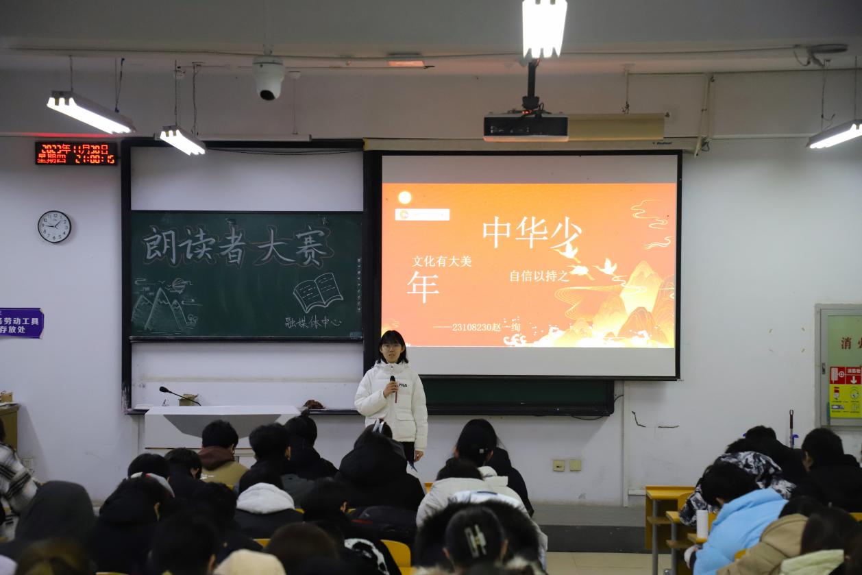 比赛伊始,由主持人宣布此次比赛规则,在此之后选手按照抽签顺序依次上台朗诵,文化彰大美,自信筑力量,岁月如歌,风雨兼程,观众们在一位位选手的倾情朗诵中被带入了如诗如画的中华史诗篇章中。