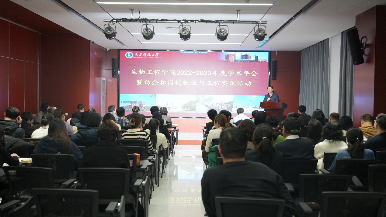 为进一步增进学术交流,加强校企合作,助力教师成长、推进学生就业,促进学科建设与发展,1月12日,生物工程学院2022-2023年度学术年会暨访企拓岗促就业与工程实训活动在天津创源生物技术有限公司召开。天津科技大学党委常委、副校长王敏,天津创源生物技术有限公司董事长梁武,生物工程学院党政领导班子成员和全体教职工参加会议,生物工程学院院长罗学刚主持会议。