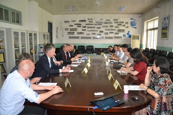 5月17日,捷克高校代表团一行十余人,在捷克新丝绸之路商会会长、捷克西波西米亚大学学术委员会委员汪万明的带领下,来到天津科技大学机械工程学院,与该院党委书记魏连江、院长张峻霞、副院长李建宇等举行座谈。