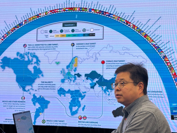 中国气象局国家气候中心工程师杨啸博士结合自身参与IPCC报告撰写以及在联合国代表中国开展全球多边谈判的经历,介绍了当前在全球范围内各国形成气候变化科学共识的过程,并指出“气候议题是科学与治理的交汇点。中国以‘中国方案’持续参与全球规则塑造,在坚持公平与共同但有区别的责任基础上,支持全球南方提升韧性与适应能力,以务实行动诠释大国担当。”