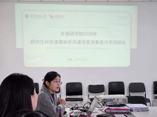 11月19日,外国语学院为深入贯彻落实研工部《关于组织开展2025年研究生科学道德和学风建设宣讲教育月的通知》的要求,顺利举办了研究生国家奖学金获得者经验交流会。本次交流会由研究生会负责同学葛小源主持。