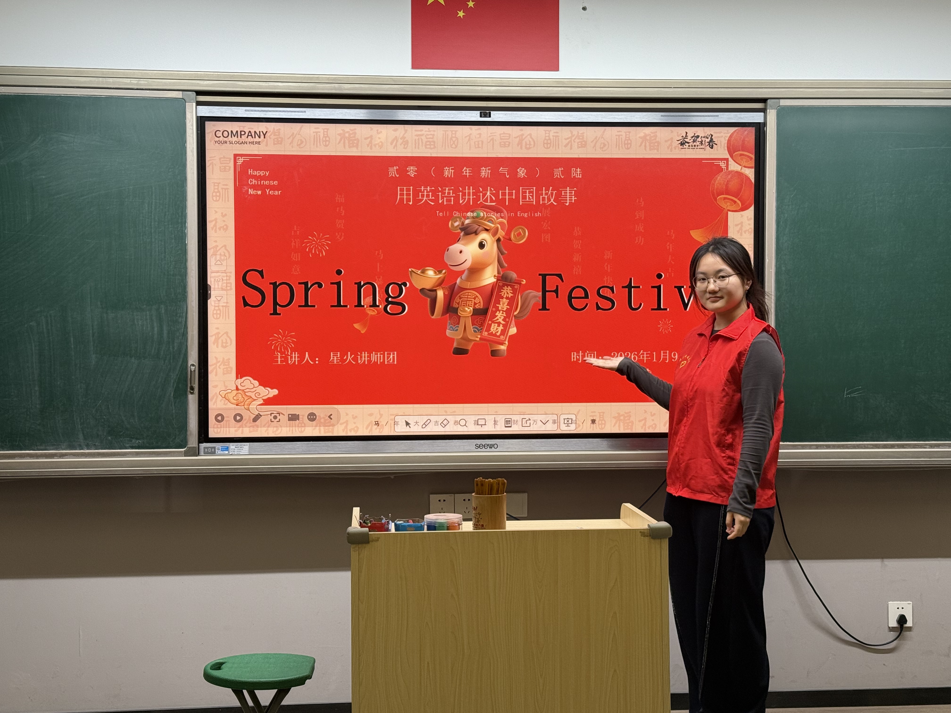 为深入推动中华优秀传统文化的国际传播,践行外语人的时代使命,同时丰富中小学生课后文化生活,1月9日,外国语学院“星火讲师团”前往中新天津生态城北京师范大学附属小学,顺利举办了“用英语解锁春节密码”文化传播主题活动,旨在通过趣味英语教学,向青少年生动阐释春节文化的深厚内涵。
