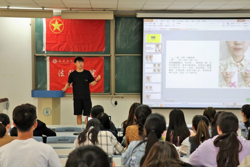 为提高学生主持能力,法政学院于2019年5月6日12时30分在泰达校区中院图书馆第十阶梯教室举办主持技能培训活动。本次培训活动由天津科技大学校广播台播音部部长耿昌盛主讲。