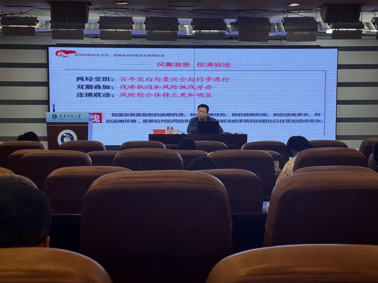 为坚定不移贯彻落实总体国家安全观,以新安全格局保障新发展格局,推动我校“先锋计划”进一步发展,树牢“先锋意识”,坚持“先锋标准”, 弘扬“先锋精神”,涵养“先锋文化”,天津科技大学马克思主义学院、教务处、人民武装部、安全工作部联合组织于12月12日晚在河西校区C区报告厅开展国家安全教育讲座。讲座特别邀请到中共天津市委党校(天津行政学院、中共天津市委党史研究室)社会学教研部(应急管理培训中心)副主任、副教授李理担任主讲嘉宾,文法学院参与本次国家安全教育系列讲座,积极响应学校号召,动员学院同学们参与。