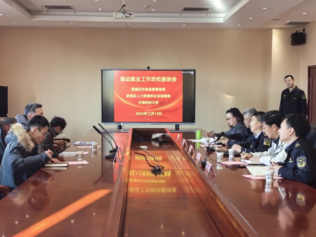 为全面贯彻落实我校“先锋计划”、弘扬“先锋文化”,12月13日天津科技大学文法学院院长吴振军同团委书记穆庆夏、就业指导中心李响共赴武清区市场监督管理局开展政校座谈会。