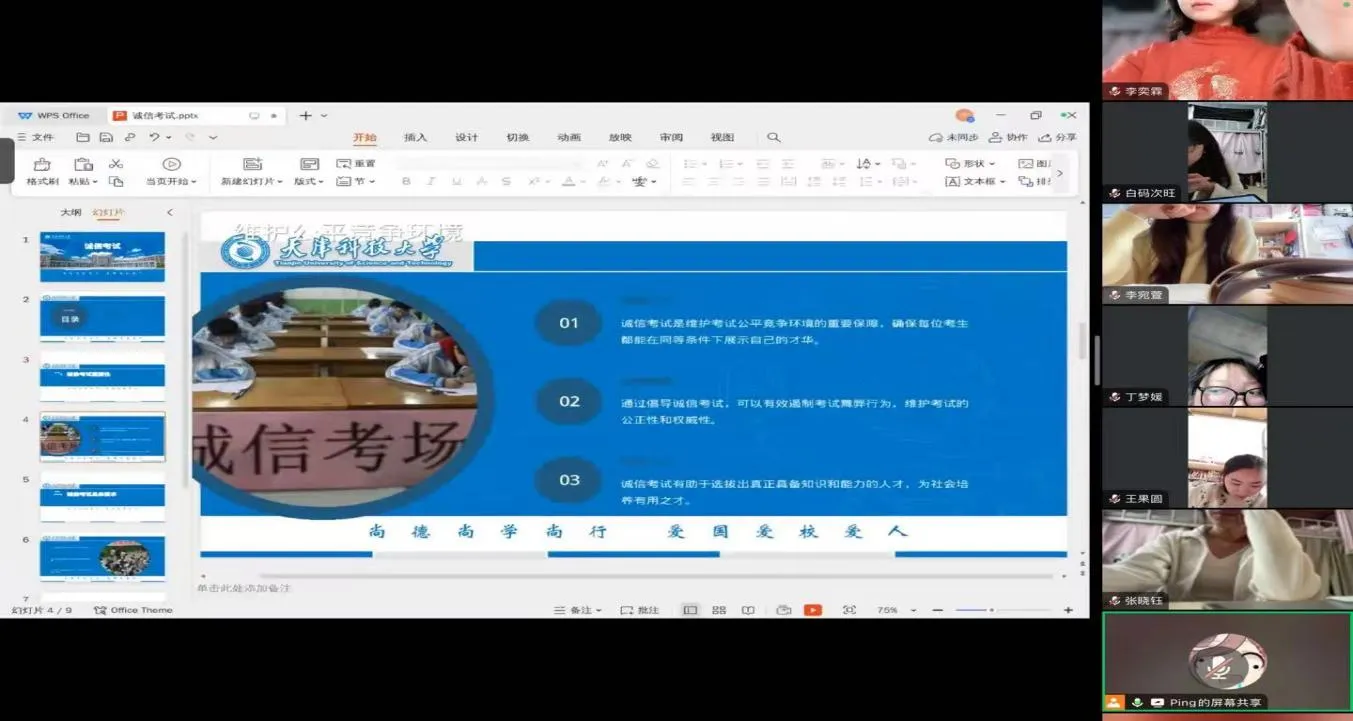 随着全国大学英语四、六级考试,及学校期末考试临近,为进一步推动落实我校“先锋计划”,切实加强考风考纪教育,引导广大学生增强纪律意识、争做科大先锋。文法学院24级各班组织了关于诚信考试的主题班会。