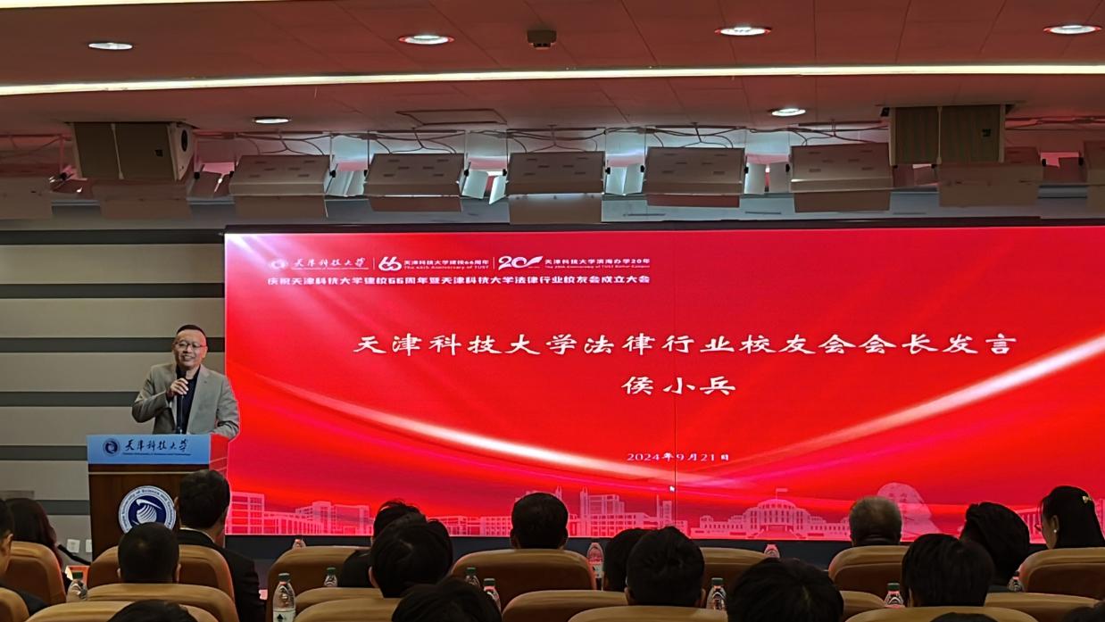 侯小兵在发言中表示,作为科大学子要努力发挥专业优势,积极承担社会责任,以实际行动践行初心和使命,提供更加优质高效的法治产品、法律服务。同时,作为天津科技大学法律行业校友会会长深感荣誉与使命。怀着对校友会事业的无限期许,未来仍将不遗余力地关心支持校友,与大家齐心协力,以脚踏实地的责任与担当共同推动法律服务行业高质量发展。