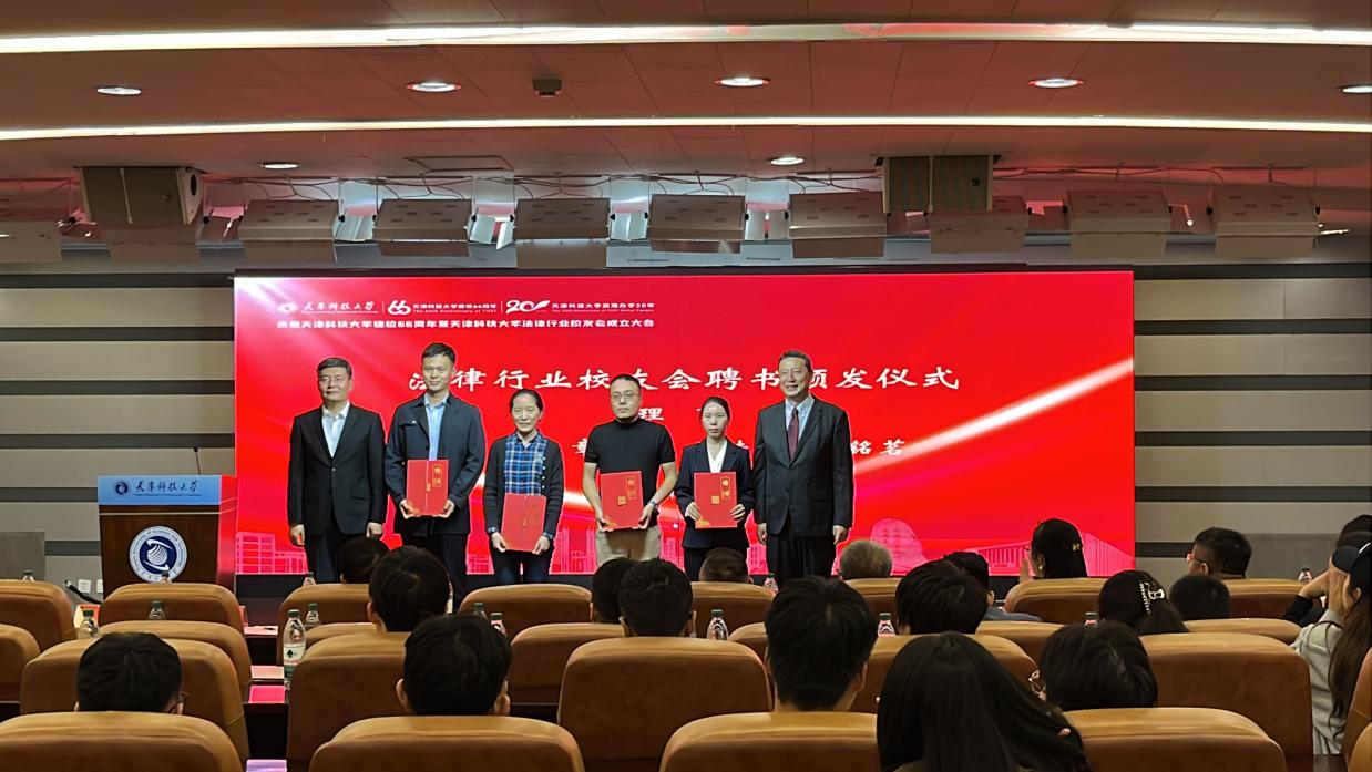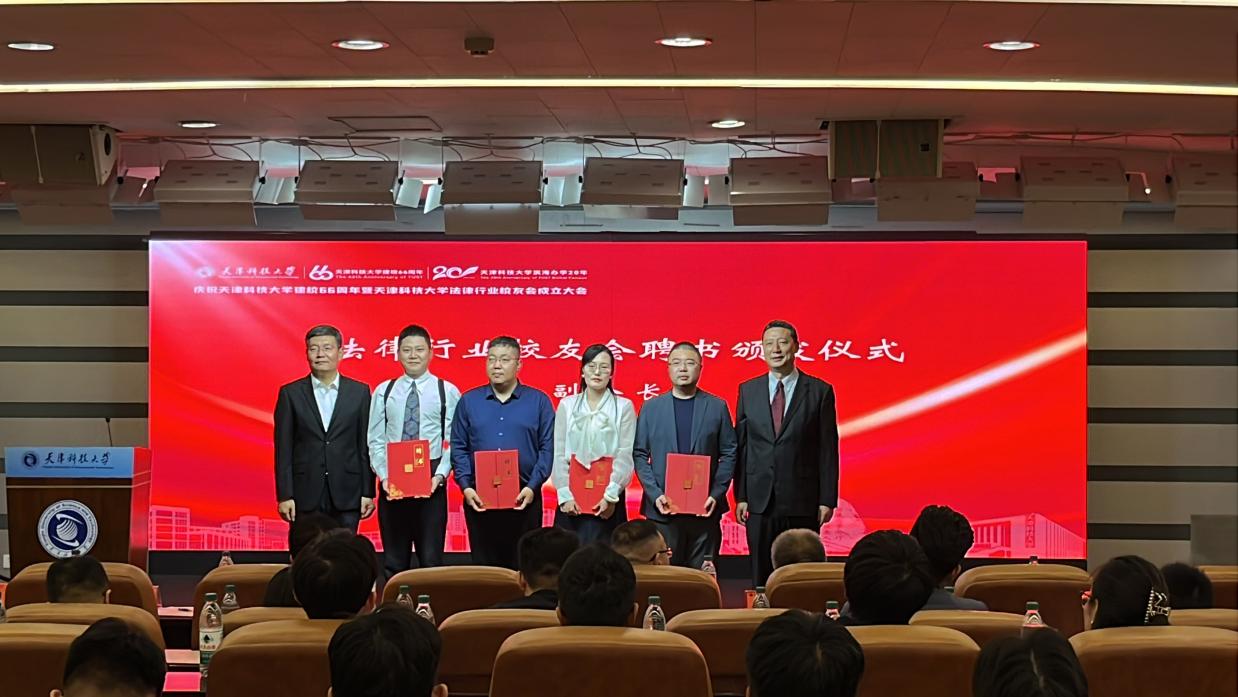 坚,矢志服务国计民生”的办学传统,弘扬校训精神,在各行各业、各个领域辛勤耕耘、施展才华、创造业绩。天津科技大学法律行业校友会的成立,是学校深入贯彻习近平法治思想和全面推进依法治国、依法治校、重要举措,是广泛团结、凝聚校友,加强校友沟通的重要平台,是产教融合、校企合作、协同育人的重要尝试。希望校友会发挥好桥梁纽带作用,积极联络校友、悉心服务校友,不断加强校友之间、校友与母校之间的联系,激发校友活力、促进合作发展,着力打造母校与校友发展共同体。希望天津科技大学法律行业校友会成为广大校友的精神家园,凝聚广大校友永葆母校情怀,继承和发扬科大人品质,齐心协力助推学校事业蓬勃发展,以实际行动为母校增光添彩。