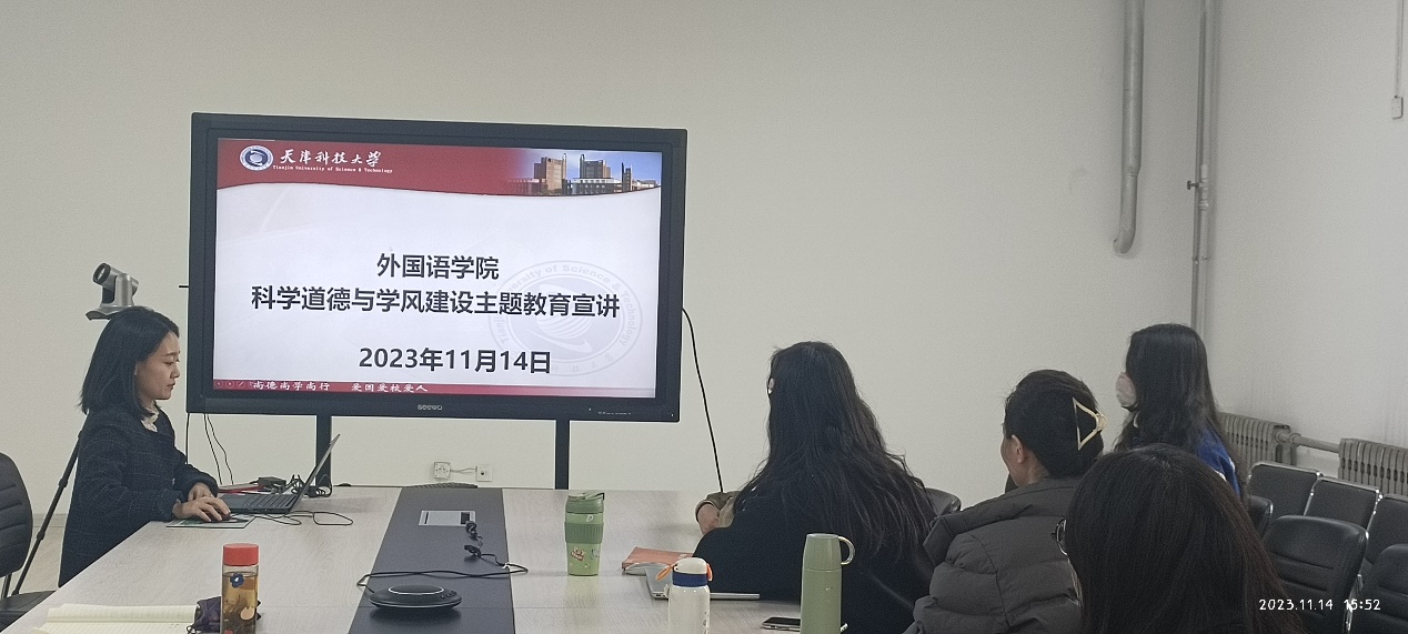 2023年11月14日外国语学院组织全体研究生对《研究生科学道德和学风建设宣讲教育文件选编》进行了集中学习与讨论,讨论会由外国语学院辅导员修茸岑主持。
