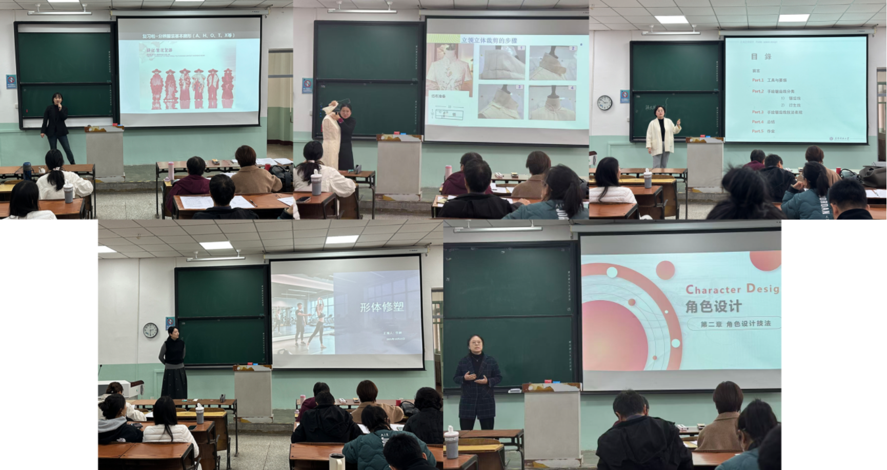 比赛现场,5位参赛教师凭借扎实的专业功底与精心的赛前准备,展现出鲜明的教学风格与独特的育人思路。教学展示环节采用“无生上课”,20分钟的课堂呈现节奏紧凑、亮点纷呈。服装专业的张春夏、关娟娟二位老师分别围绕服装造型设计、服装裁剪设计展开教学,结合实物教具与多媒体课件,将复杂的专业知识拆解为生动易懂的教学内容;表演专业的任昶老师以表演动作为教学载体,通过形体修塑课程,引入动作示范,课堂互动设计巧妙,充分调动课堂氛围;公共艺术专业的王雁飞老师则以景观手绘技法课程为主题,通过案例展示和实操演示相结合的方式,讲解如何将景观建筑和植物等进行生动表达,展现出扎实的教学基本功;动画专业的李冉老师以动画角色设计为主题,通过案例演示和对比,清晰讲解角色塑造的规律和方法,板书布局合理、逻辑清晰,带来一堂视觉盛宴。