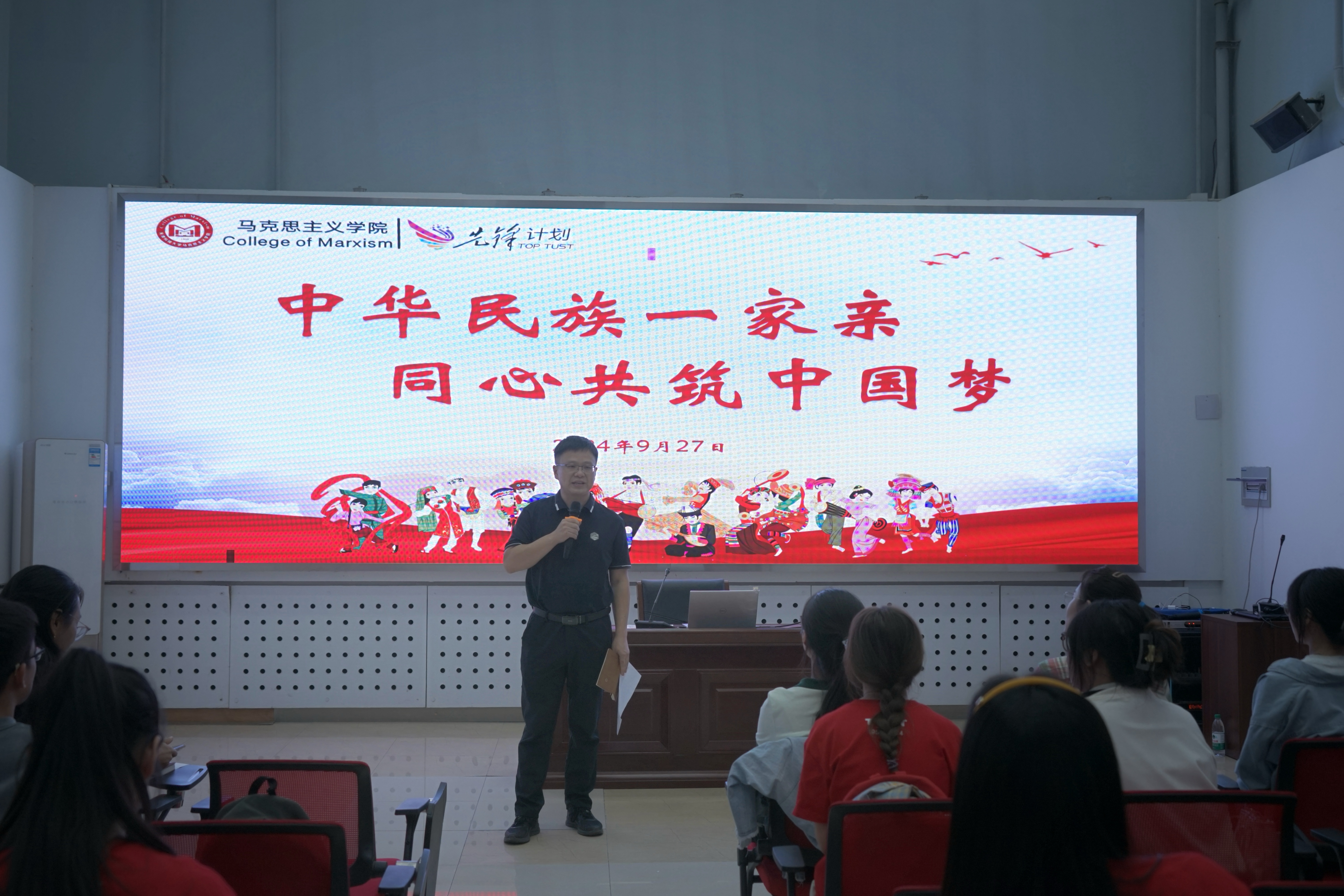 最后,滕翠华表示,本次民族团结进步宣传月主题班会活动组织用心、准备用心、主持用心,用实际行动书写了“中华民族一家亲”的马院篇章,通过各民族同学大团结的方式凝聚起践行的“先锋行动”、涵养的“先锋文化”、构建的“先锋生态”的马院力量。