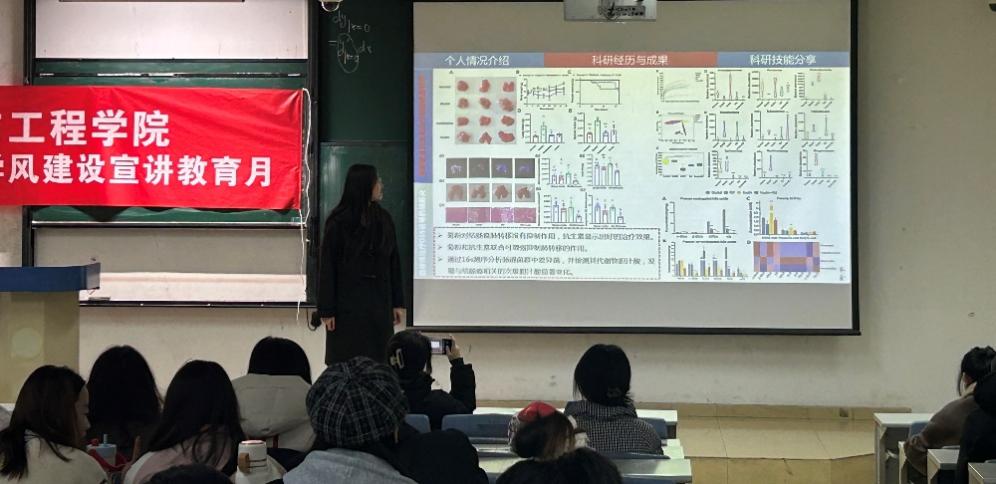 为进一步加强研究生科学道德与学风建设,培养严谨求实的科学精神。生物工程学院于近日在9-3阶梯教室成功举办了2024年生物工程学院研究生科学道德与学风建设月主题宣讲第四讲。本次宣讲活动营造了浓厚的学术科研氛围,拓展了在校研究生的学术视野,以榜样的力量带动大家的学术追求,也进一步创造了研究生学术交流的机会。