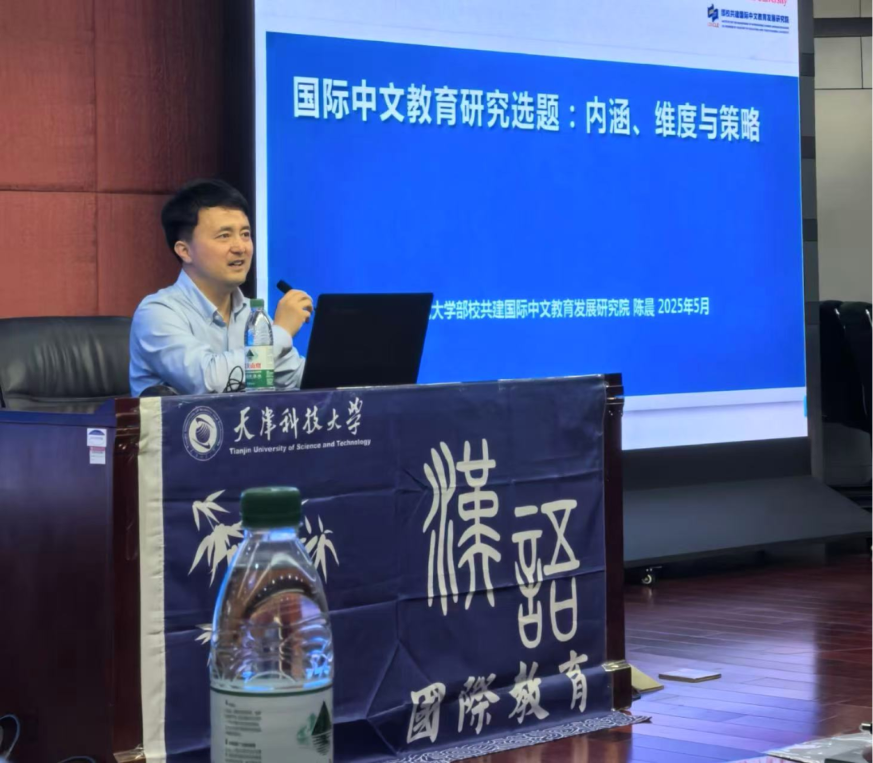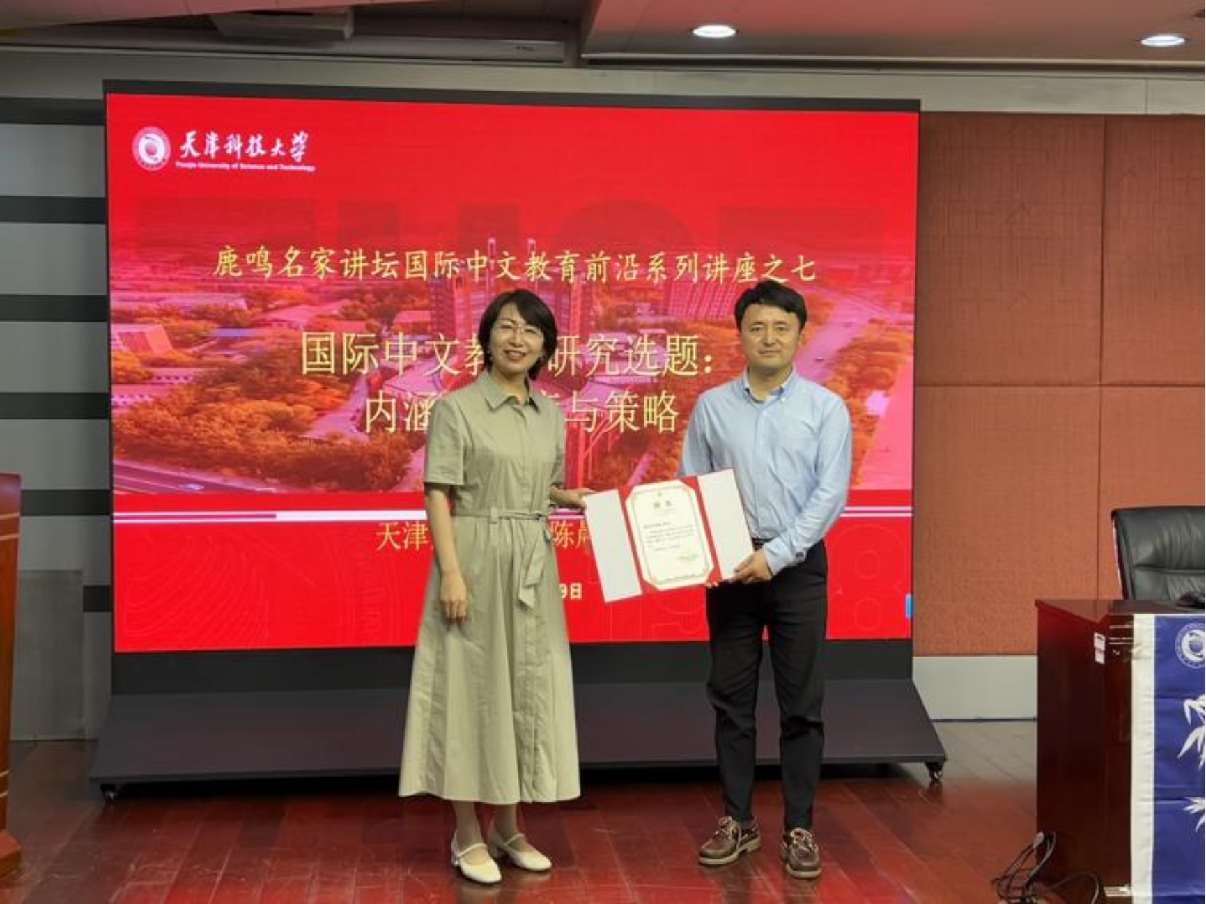 5月29日,由文法学院主办的鹿鸣名家讲坛国际中文教育前沿系列讲座之七,在河西校区C区报告厅顺利举行。本次讲座特邀天津师范大学陈晨教授,以“国际中文教育研究选题:内涵、维度与策略”为主题展开深入讲解。学院副院长张海涛,汉语国际教育系十余名教师代表,全体本硕同学共同参与。讲座伊始,张海涛副院长为陈晨教授颁发国际中文教育专业行业导师聘书,感谢其为专业发展提供的指导与支持。