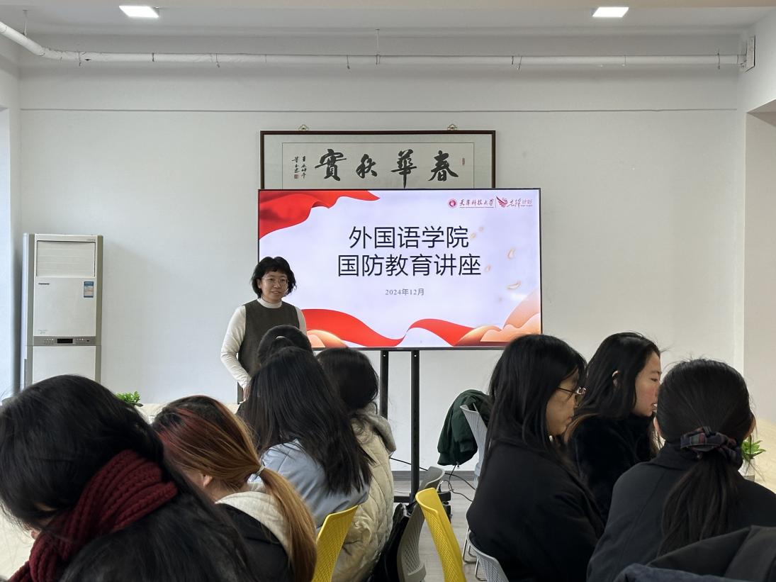 为深入贯彻习近平新时代中国特色社会主义思想,落实习近平总书记关于加强全民国防教育的重要指示精神,进一步增强公众的国防意识,弘扬爱国主义精神,2024年12月5日下午,外国语学院组织全体研究生开展了一次国防教育讲座。